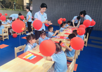 孩子、老师们挥舞起手中的小红旗,他们跳跃,旋转,一边欢笑一边挥舞,就像拥有了小小的魔法棒,将喜庆的气氛传递给每一个人。这一刻,他们是最纯真的祝福者,用自己的行动,传递着对祖国深深的热爱和祝福。