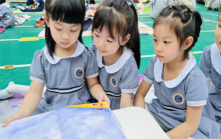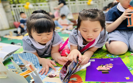 老师们的精美布置,孩子和家长的创意绘本作品给幼儿园的阅读环境带来了浓浓的春意,在轻柔的音乐中孩子们认真安静地阅读,时而专注的自我阅读,时而小声和伙伴交流,老师们的陪伴阅读让孩子们更加投入故事情节中。